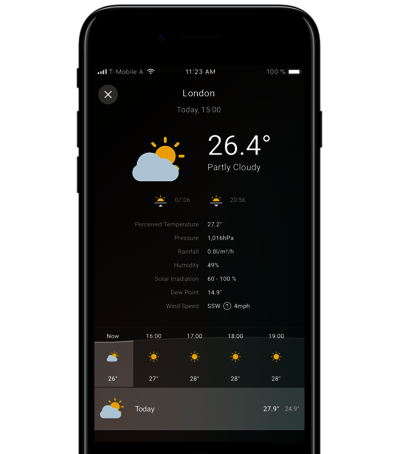 Usługa pogodowa Loxone zawarta w pakiecie przez pierwszy rok jest całkowicie bezpłatna. Dzięki usłudze online możesz uzyskać dokładne dane meteorologiczne, w tym prognozy dla swojej lokalizacji. Sprawdzisz je na swoim BMW i Wallbox Pro, smartfonie oraz tablecie.